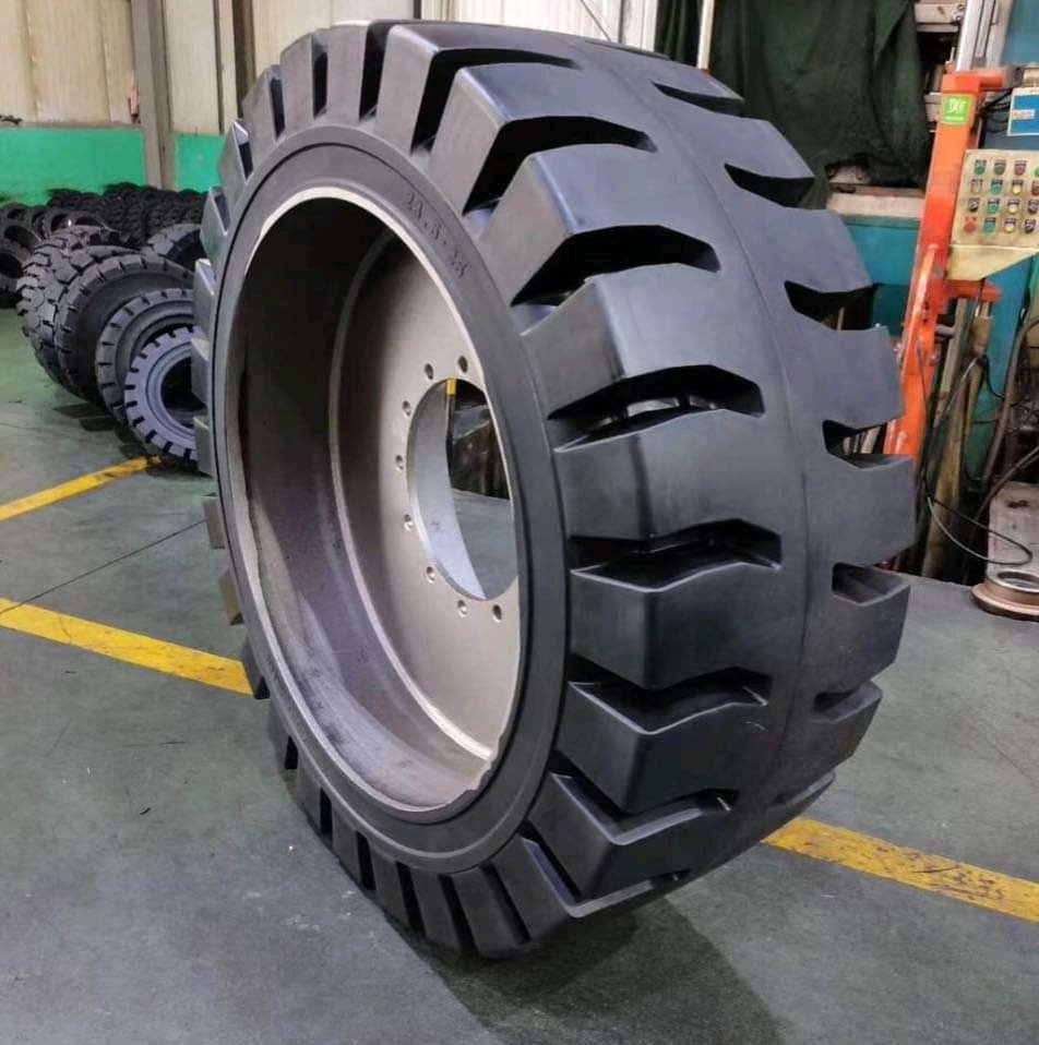 实心轮胎是一种无充气结构的轮胎,核心特征是胎体由实心弹性材料(如橡胶、聚氨酯等)整体成型,不依赖空气支撑载荷。